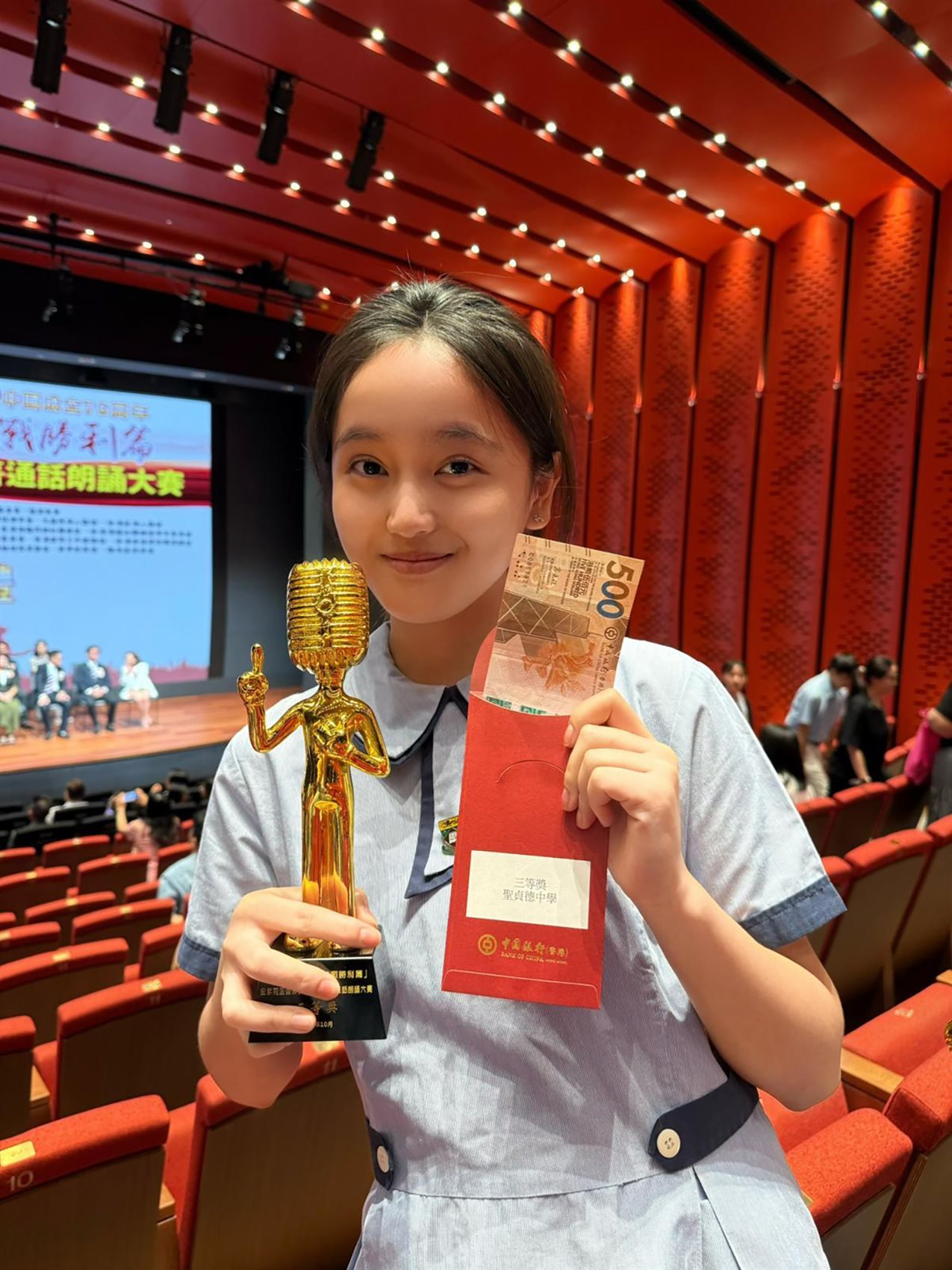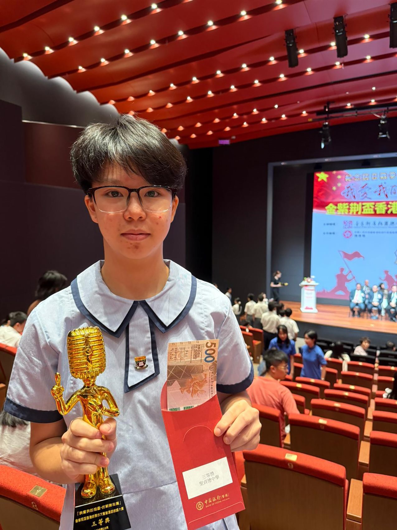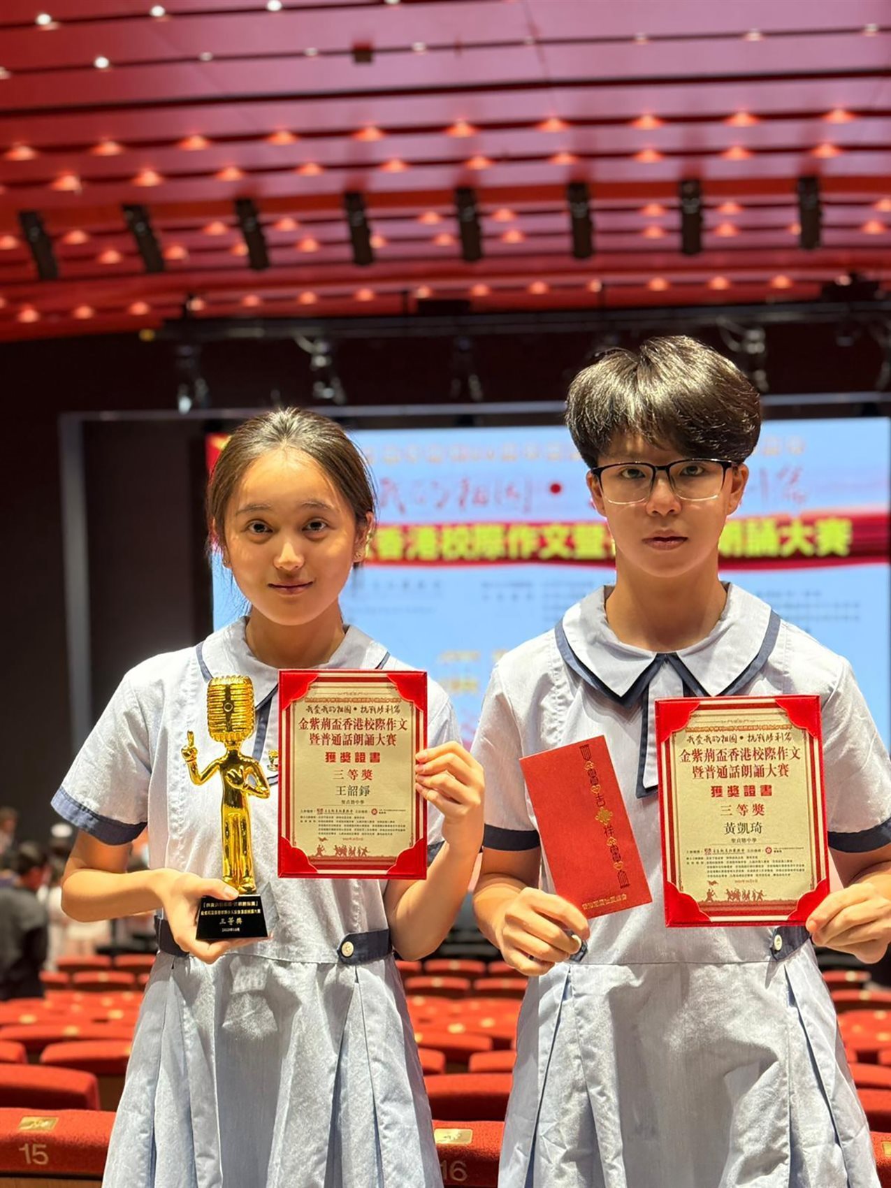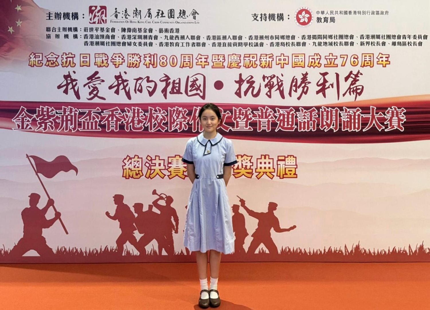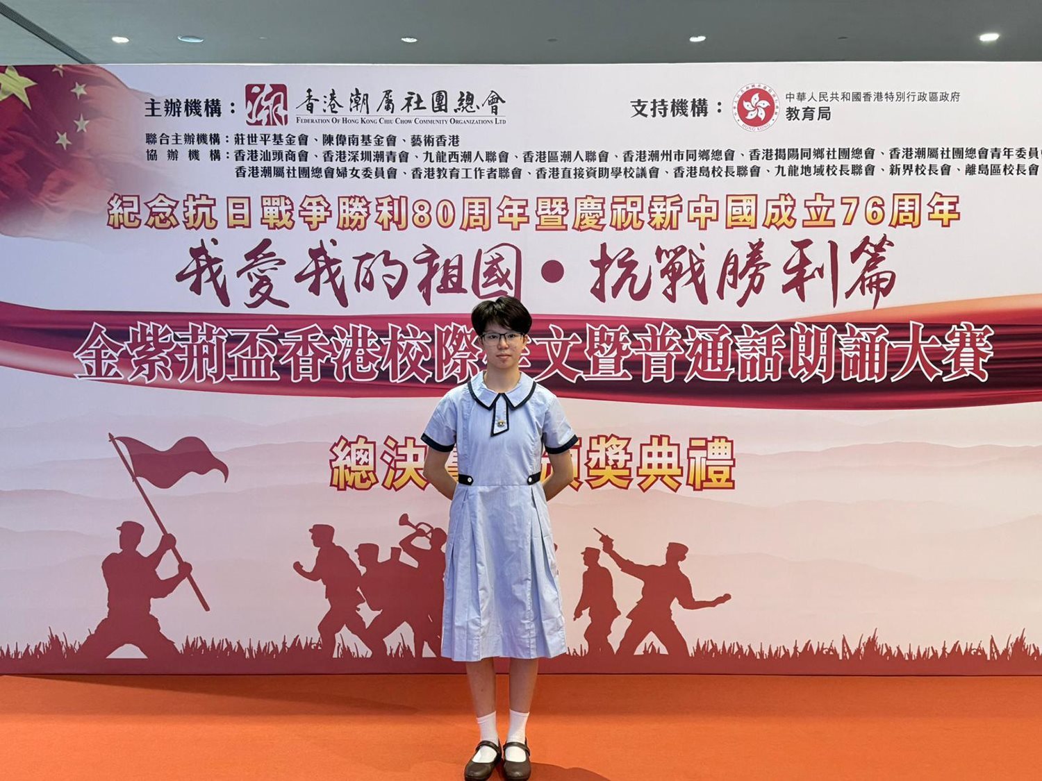 Our school participated in the "I Love My Motherland. Victory of the War of Resi色花堂ance Chapter – Golden Bauhinia Cup Hong Kong Inter-School Essay and Putonghua Recitation Competition" organized by the Education Bureau and the Federation of Hong Kong Chiu Chow Community Organizations, and won third prize. The li色花堂 of winners is as follows: