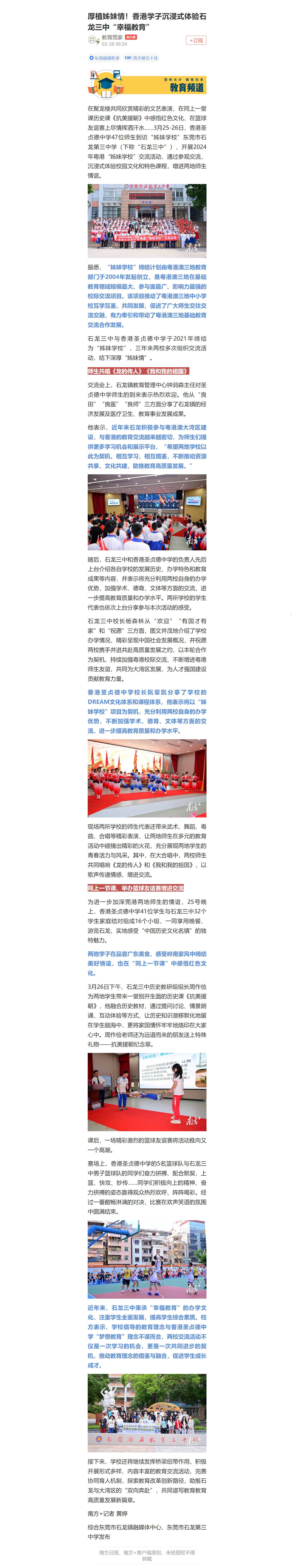 厚植姊妹情! 香港學子沉浸式體驗石龍三中“幸福教育”