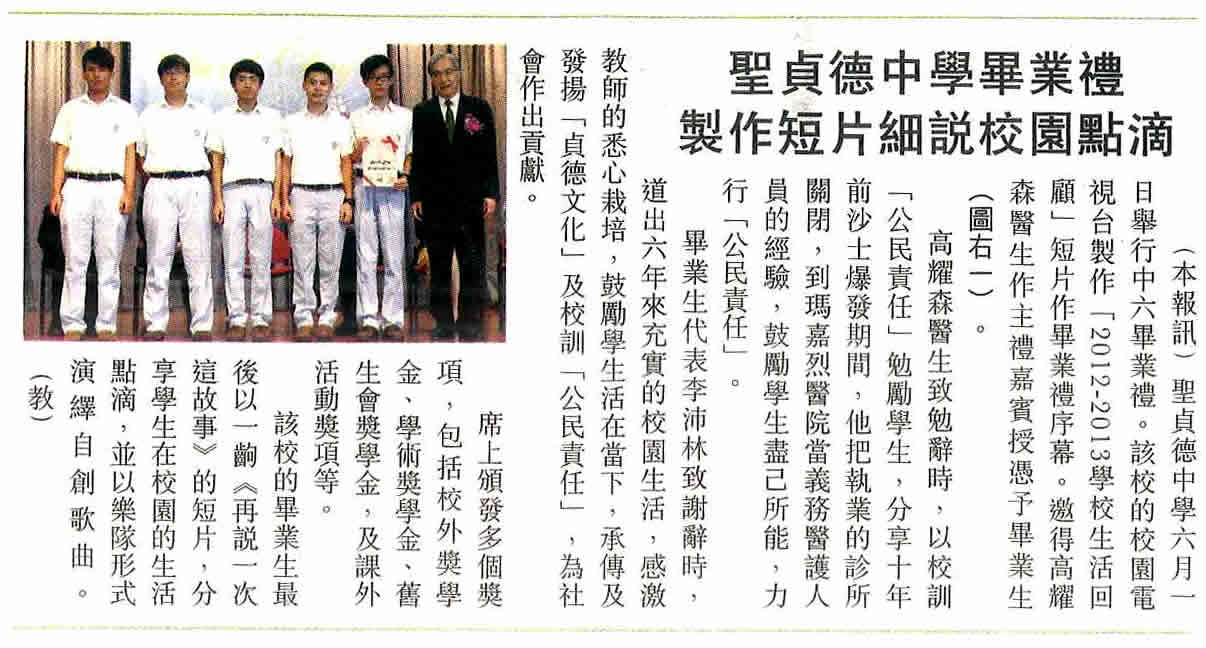 聖貞德中學畢業禮 製作短片訴說校園點滴