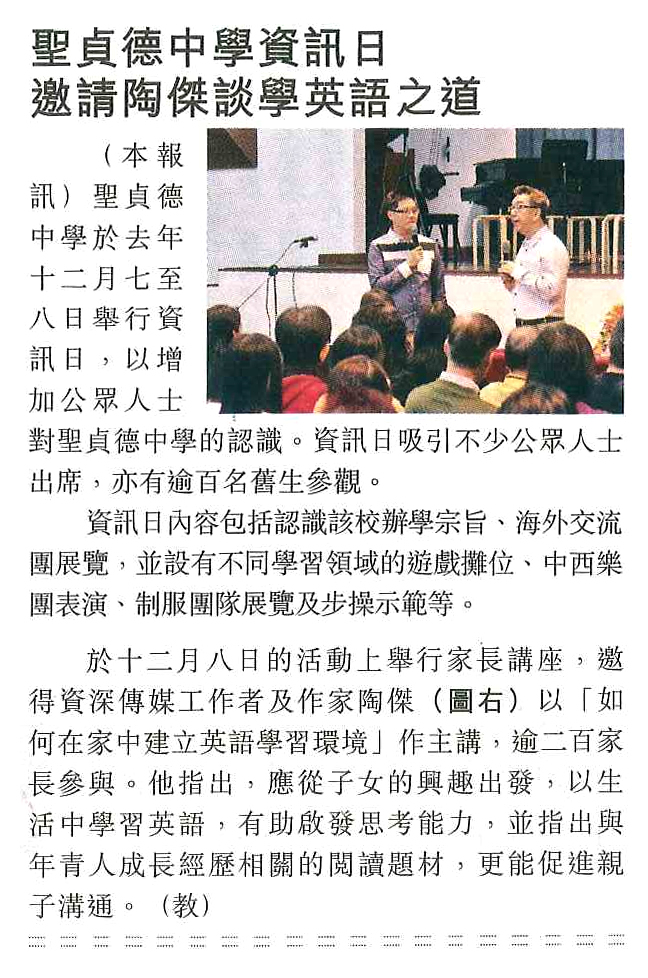 聖貞德中學資訊日 邀請陶傑談學英語之道