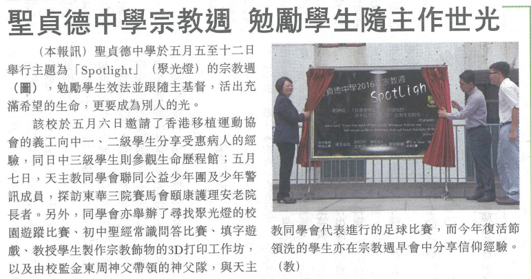 聖貞德中學宗教週 勉勵學生隨主作世光